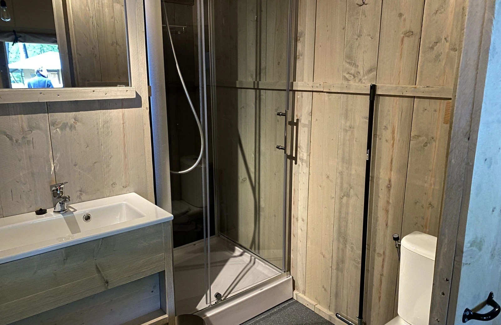 - Badkamer met inloopdouche, wastafel en toilet