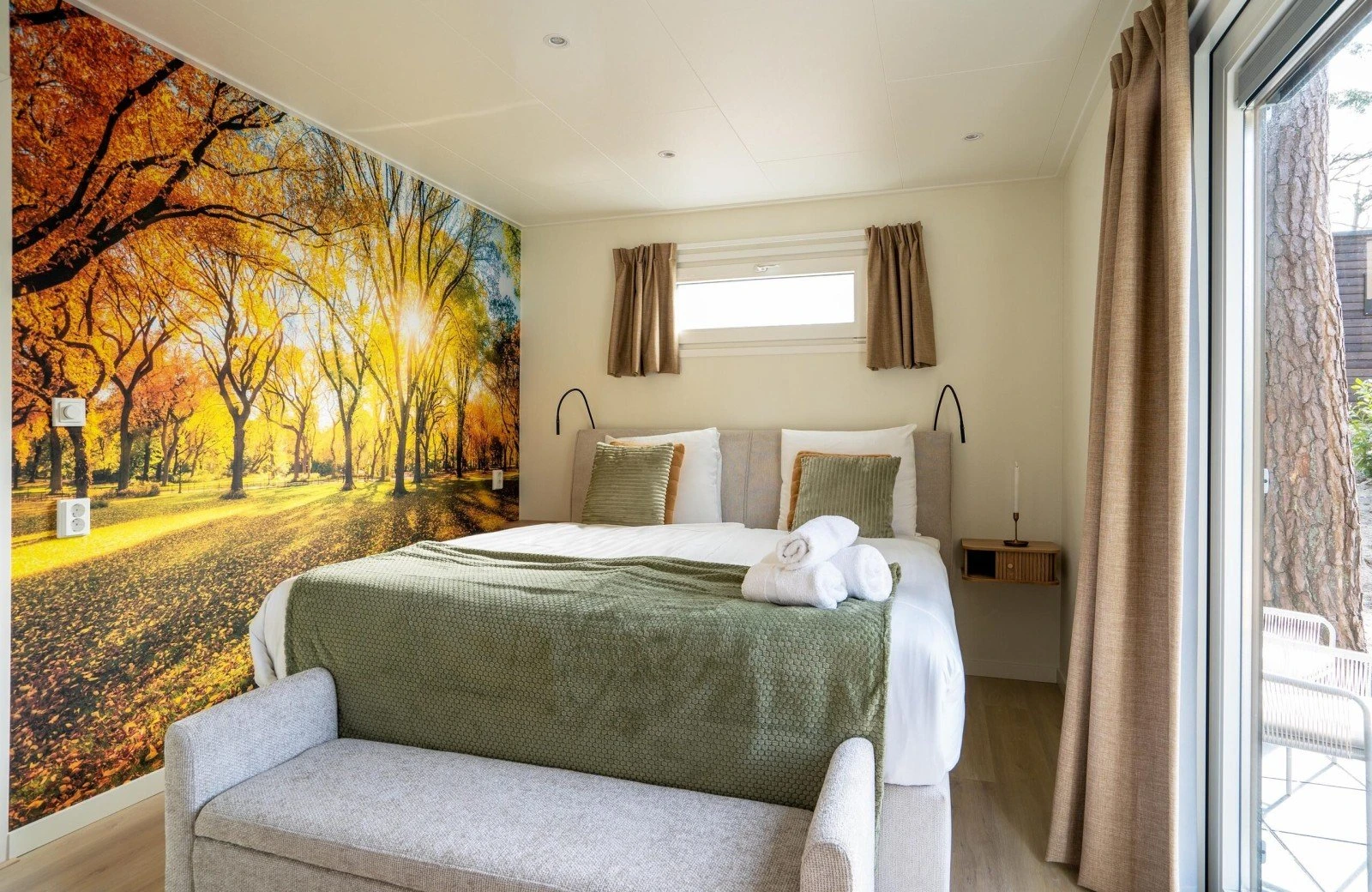 - Tweepersoonsbed (160x200) Tiny house 707 beschikt over een boxspringbed met 2 aparte matrassen (90x200)